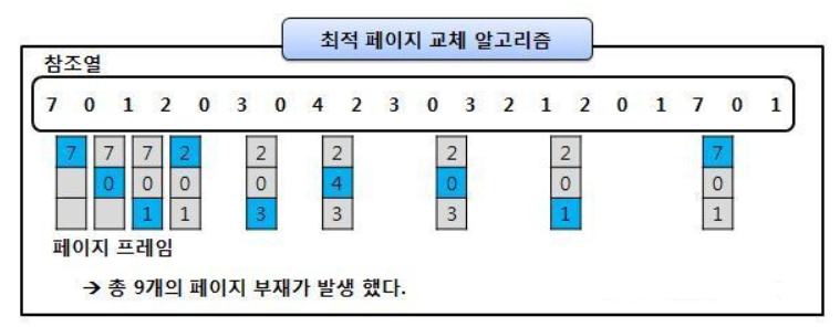 Optimal Page Replacement 알고리즘, 앞으로 가장 사용하지 않을 페이지를 가장 우선적으로 내보냄